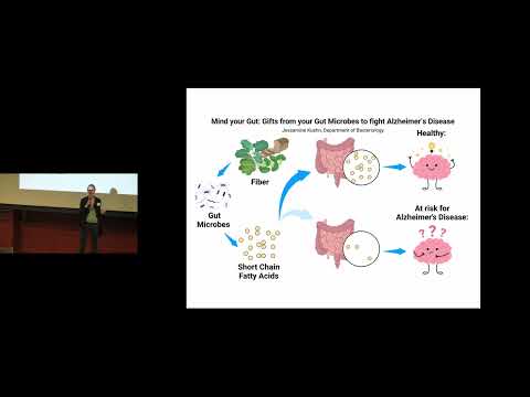 This talk explains how devastating brain diseases such as Parkinson’s disease and dementia may begin not in the brain, but in the gut. The speaker describes how a protein called alpha-synuclein can change shape, form toxic complexes, and spread from cell to cell, traveling from the gut to the brain via neural connections. Once in the brain, these toxic complexes disrupt movement, memory, and thinking. The research identifies a key protein, FABP2, that promotes this harmful process by interacting with alpha-synuclein. By targeting and breaking this interaction early—at the level of the gut—the work aims to prevent neurodegenerative disease before irreversible brain damage occurs, potentially reducing patient suffering as well as medical and societal costs.
